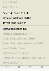- Reset Selected Bones : Returns bones to their original XYZ and HPB positions relative to their parent bone