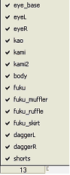 Obviously, Keynote is a plug-in for Metasequoia. It lets one add animation to a model by creating bones which let you pose the model and such inside the program. It also comes with an exporter that saves your animated model in Microsoft's standardized X format which provides some ability to transfer it into other programs. Unfortunately... It's all in Japanese although an unofficial English translation is availiable. When downloaded and installed to Meta, it appears in the side menu under 'Misc' (in the 'Command' section) as ボーン, which means, predictably, 'bone'. It can be downloaded from the official site here by clicking the 'sheet of paper' icon. Or here (f27.aaa.livedoor.jp) by clicking the 'DownLoad' button. The button directly above the download link is the readme.txt file.